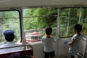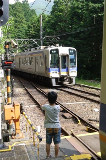駅に止まり上り電車を待つ間、ホームに飛び出して乗ってきた電車の車体や車体番号などを撮りまくり、入ってくる上り電車を待ちかまえてこれを連写する。終点極楽橋から乗り換えるケーブルカーも南海電鉄だ。