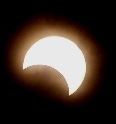日食を観察するグラスはどこでも売っていたが、どうせのことなら自分でカメラに収めてみたい。