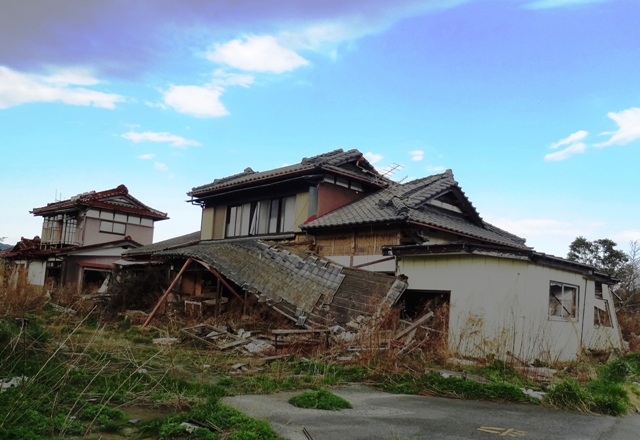 その先はすぐに荒れ地になっていて津波に破壊された家がそのまま放置されている。