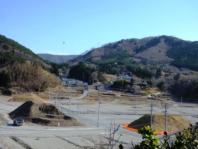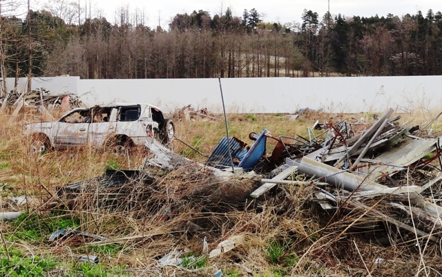 途中の国道沿いの畑には、除染によって出た残土が黒い袋に入れられ、広大な敷地にうずたかく積まれたままになっていた。