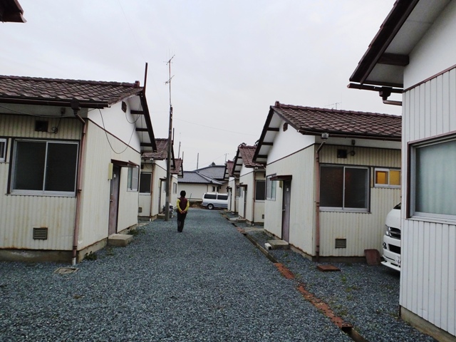 広い敷地に平屋の長屋がいくつも立ち並び、その一つに案内されたが狭い玄関に流しとトイレがあり、いくつかに仕切られた部屋には布団とテレビが置かれているだけでテーブルもなく、一応部屋の内側からは鍵をかけられるようにはなっているが外に出れば鍵はかけられない。