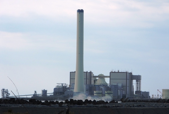 海岸線からは火力発電所がはっきりと見えた。