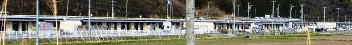 中に入ることはできないが、練習グランドと表記されている場所には目いっぱいにプレハブの仮設住宅が立ち並び、おそらく事故対応のための東電社員の宿泊施設として使われているのだろう。