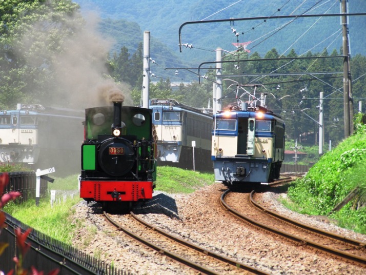 園内を走るSLと運転体験可能なEF63 |