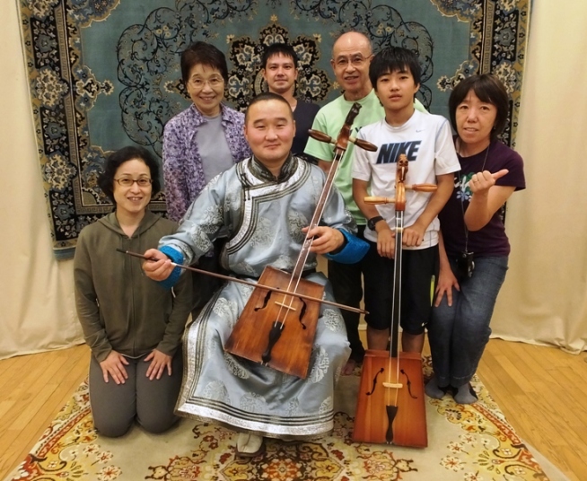 「大草原の国モンゴルの伝統的発声方法で一人で二つ以上の音を同時に発声します。低い音は喉から絞り出す唸り音(だみ声)、高い音は倍音を利用した口腔内部での共鳴音」だそうで、それはまるで楽器を奏でているような音色だった。