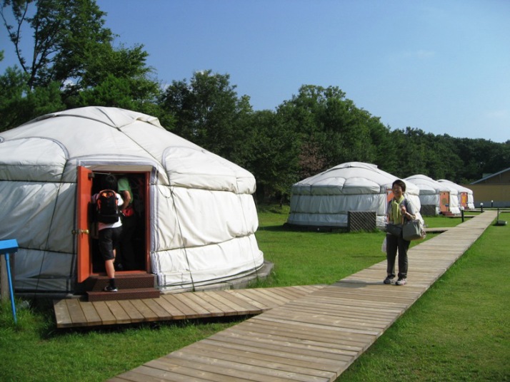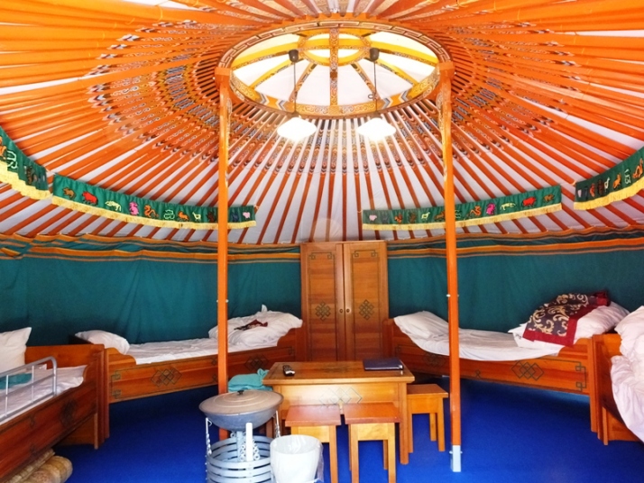 モンゴルから直輸入した移動式住居だそうだが、ここでは冷蔵庫やクーラー、テレビも揃っており、トイレと浴室が別の場所にあるだけで他の宿泊施設とさほど変わりはない。