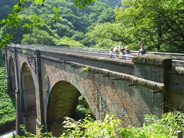 大人にとって(孫にとってもそうだったとは思うが)魅力的だったのは、明治26年(1893年)に完成させた横川―軽井沢間のアプト式鉄道、その一部のレンガ造りの橋梁「めがね橋」の美しさです。