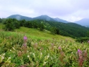 もう時期的にはとうに過ぎてしまったコマクサや、ヤマオダマキ、クルマユリなどもごくわずか目にすることもでき、これから季節を迎えるはずのワレモコウ、アキノキリンソウ、マツムシソウも多く見られ、エゾリンドウ、イワインチン、ウメバチソウなどもわずかに目にすることができた。