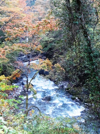 わきを流れる沢の水はきれいで気持ちが良く、木々もわずかに紅葉している。