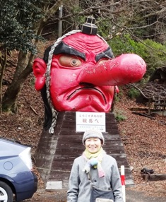 鞍馬の駅前には大きな天狗の面 鞍馬寺の山門 本殿、立っている場所がパワースポットとか