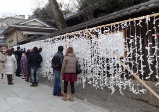 鞍馬山を越え、反対側のふもとに下りると貴船神社があり、ここは「絵馬発祥のさと」とされているようで、縁結びの御利益にあやからんと若者たちの姿が目立った。