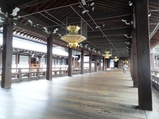 朝が早いのでまだ境内には入れないかとも心配したが、木造建築としては世界最大級ととされる御影堂にも入ることができ、その重厚なすがたには圧倒された。