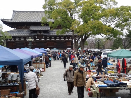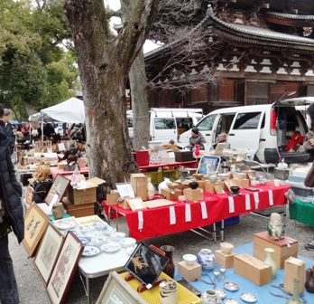 この寺の宝物館には15000点余りもの国宝・重要文化財が収められている由緒ある寺だが、私が興味をひかれたのはこの日この境内で行われていた「ガラクタ市」だ。