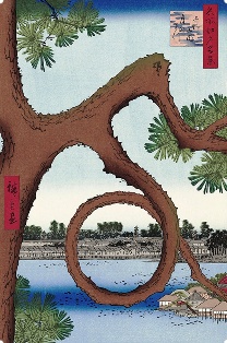 これを最近になって「江戸名所」として150年ぶりに復活させたが、円形の松の枝をつくるのには苦労したようで、江戸時代であったらなおのこと職人が苦心を重ねたのだろう。