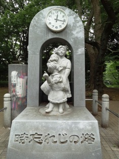 落語家の初代林家三平の奥さんでエッセイストの海老名香葉子さんが中心となり寄贈した時計台だが、関東大震災、東京大空襲を知ってもらい平和な時代へと時をつなげる心を持ってもらいたいとの思いでつくったものだ。