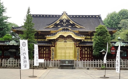 立派な石灯籠がならぶ「上野東照宮」には「核兵器をなくし、永遠に平和を誓う広島・長崎の火」がある。