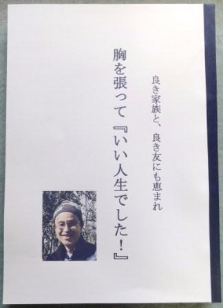 自分の人生を振り返って見て、ほんとうにありがたい良い人生だったと思っている。戦争前夜に生まれ、戦中戦後の困難な時代は体験したが、それとて親の献身的な愛情と庇護のもと、貧しかった生活も、むしろ支え合う家族の歳下のものをかばう一体感は充分に心を満たしてくれ幸せだった。その後の人生では努力をすればそれなりにその努力は報われた。やがて所帯を持ち、子どもや孫にも恵まれ、平凡ではあるが波風の立たぬ平和な生活を送ることもでき、社会的にも70年という長い年月戦争にかかわることなく過ごすこともできており、なによりのことだ。