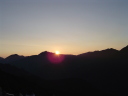4時10分出発、すでに山の端は茜色に染まり、やがてその色は明るさを増し、太陽がその姿を見せはじめ、周りのすべてを支配下におく。山上でのご来光は久しぶりだ、何年ぶりだろう。