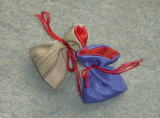 その結果、年の初めにふさわしい縁起の良いものを・・・ ということで、端布を使って小袋を作り、お客様に代わって鎌倉の銭洗い弁財天で清めてきた五円玉を納め、「お客様とカリーナの末永いご縁を願って」と言う意味を込め、受け取っていただこう・・・ となった。