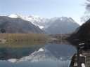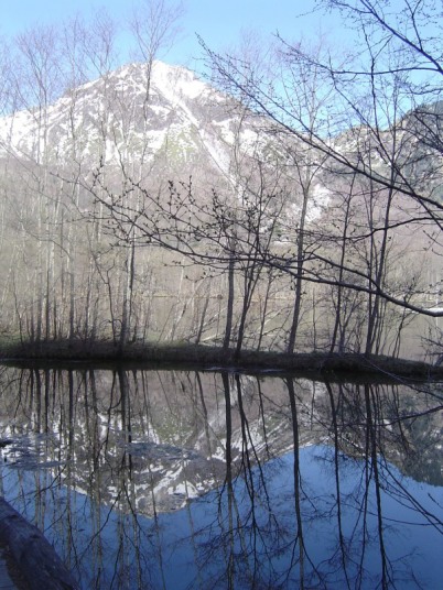無風の湖面に影を映す穂高焼岳は、変わらずにどっしりと、そして優雅だ。