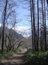 徳沢で昼食をすませ宿泊先の河童橋までもどったが、あたたかくなった気温のせいなのだろう、明らかに往路のときよりもニリンソウの花が多く咲いていおり、その最盛期のみごとさがより強く想像され、またしても未練が・・・・・。