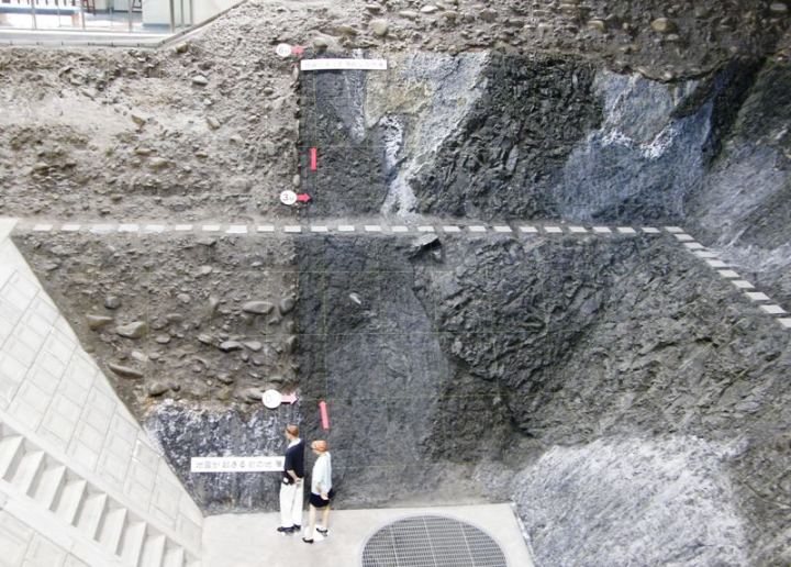 この建物内部にはこのときの地震でできた、基盤岩石が垂直に6mにも及ぶくいちがいの姿をそのまま保存しており、長さ1000メートルにも及んだこの地震断層は現在もこの地域に保存保護されている