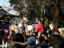 豆まきが始まったが豆やお菓子など軽いものはやはりそのほとんどは前に落ちてしまう。