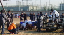 陽が傾いても練習が続く |