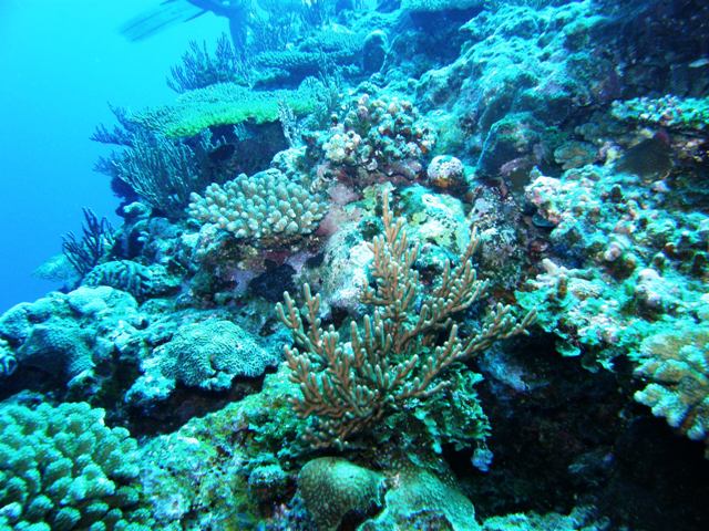 『沖縄島の西約100kmに位置する久米島の沿岸で、大規模なサンゴ群集が発見されました。WWFジャパンの「久米島応援プロジェクト」に参加している研究者が、2010年4月および5月に、現地で潜水調査を行なったところ、数百メートル四方を超える広大な範囲に広がっており、貴重な環境が残されていることが明らかになりました。