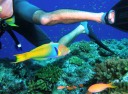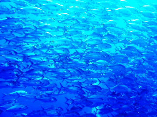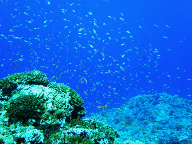 初心者の私のために豪快な景観を見られるポイントを選んでくれたのだろうか、大型のギンガメアジの大群にめぐり会えた。