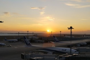 途中何かがあっても困るのでゆとりを持って出発したため日の出前に羽田に着く。